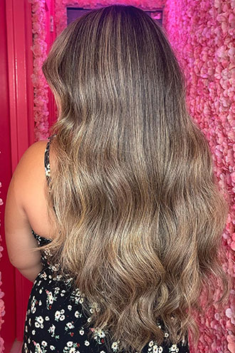 Balayage is a personalized hair coloring technique that involves hand-painting to achieve a sun-kissed, natural look with soft, blended highlights. This service includes a consultation, bond protection treatment, gloss or toner application, and styling, with pricing determined by hair length, density, and the desired level of lightness.